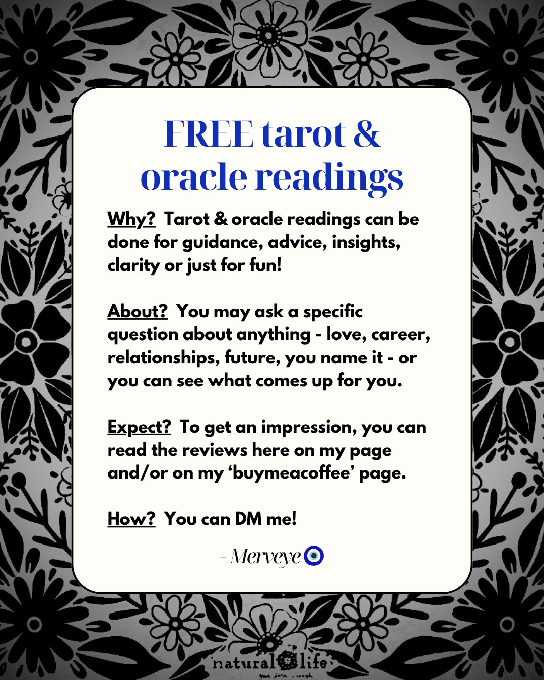 Also, I’m offering free tarot & oracle readings;